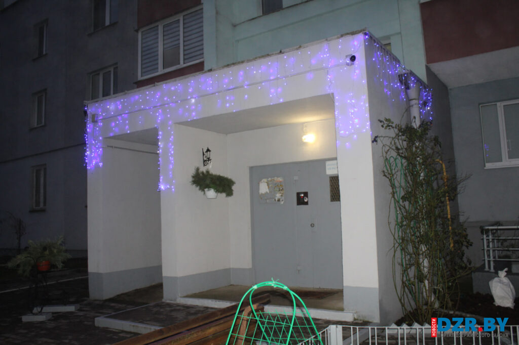 А жители дома 34 на ул. Минской одними из первых украсили огнями входные группы подъездов.