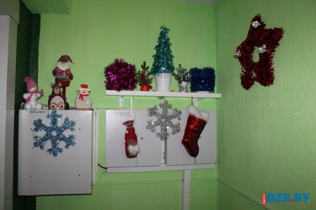 — Каждый раз подъезд мы украшаем к Новому году. Все делается за счет средств жителей дома. Мы этим гордимся. Нам это нравится. Все в этом активно принимают участие, — рассказала жительница Наталья Пушкаревич. — Больше украшений у нас на первом этаже, так как через него проходят все. Но украшаем и до девятого этажа.