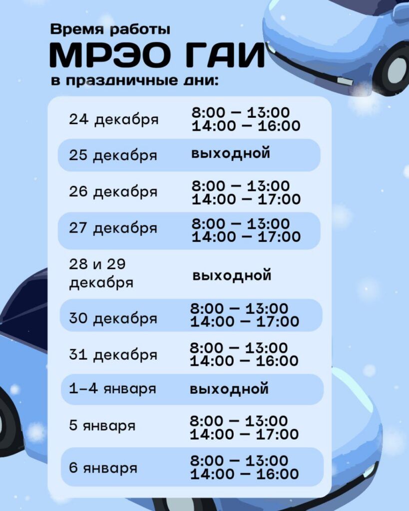 По какому графику будет работать МРЭО в предстоящие праздники, на пресс-конференции сообщил начальник ГУГАИ МОБ МВД Виктор Ротченков.