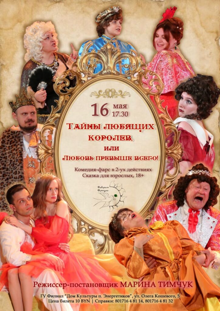 Удача любит смелых. Готовы ли вы стать свидетелями дворцовых интриг и узнать королевские тайны? Любительский театр «Фаворит фортуны» при Дзержинском районном Центре культуры и народного творчества приглашает на свой спектакль «Тайны любящих королев, или Любовь превыше всего», который состоится 16 мая в 17.30 в Доме культуры п. Энергетиков.