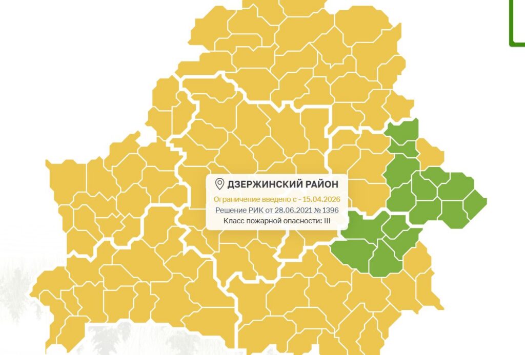Почти на всей территории Беларуси введены ограничения на посещение лесов. Среди них — и Дзержинский район. Об этом свидетельствует интерактивная карта Министерства лесного хозяйства.
