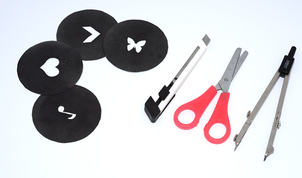 - с помощью канцелярского ножа вырезаем нарисованные в центре заготовок фигуры, а потом и сами кружки;