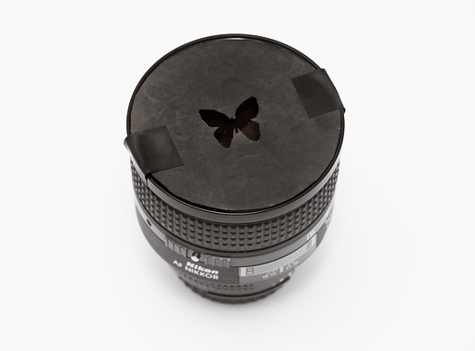 - прикрепляем трафарет на объектив изолентой или скотчем;