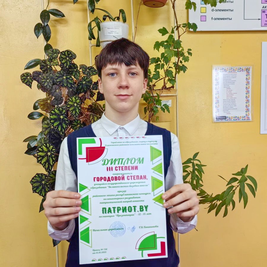 - диплом III степени районного этапа республиканского конкурса компьютерных разработок патриотической направленности «Патриот.by».