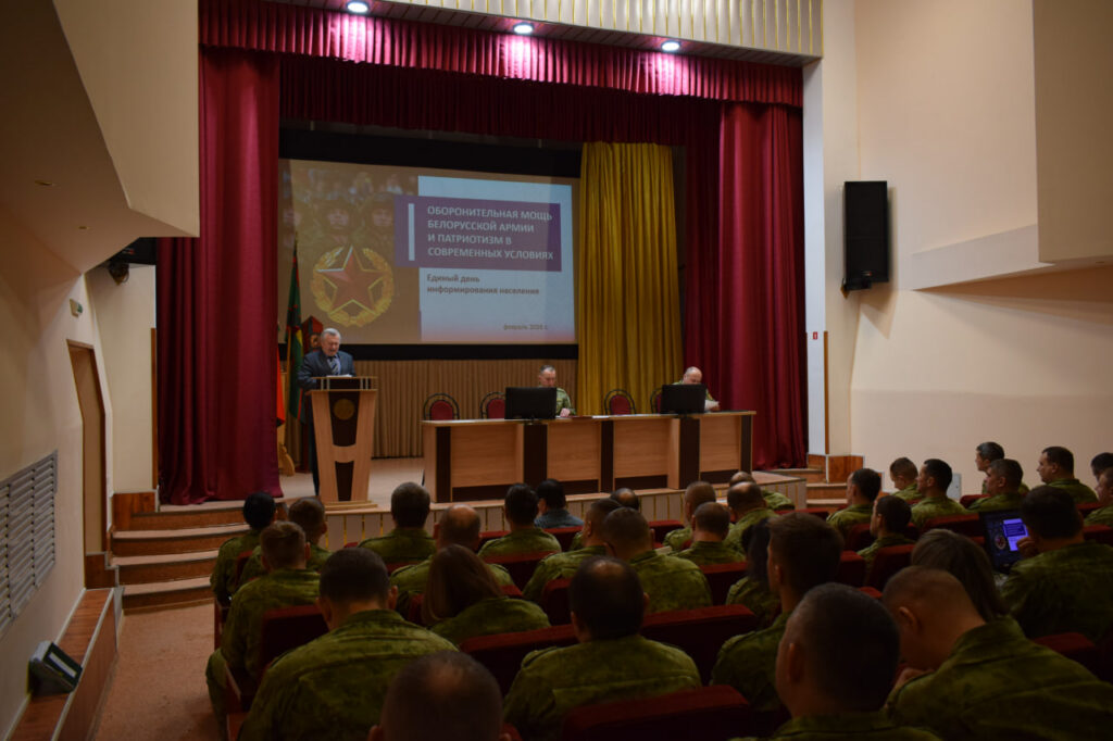 В рамках единого дня информирования, выступил председатель Дзержинского районного Совета ветеранов Виктор Феоктистов. Его доклад был посвящен актуальной теме – обороноспособности белорусской армии и роли патриотизма в современных условиях. Участники встречи обсудили, как гражданская ответственность и любовь к Родине сегодня становятся основной для защиты суверенитета страны.