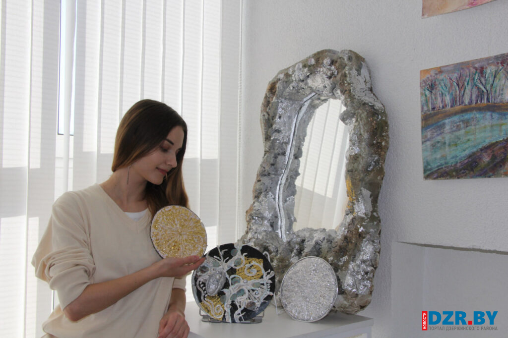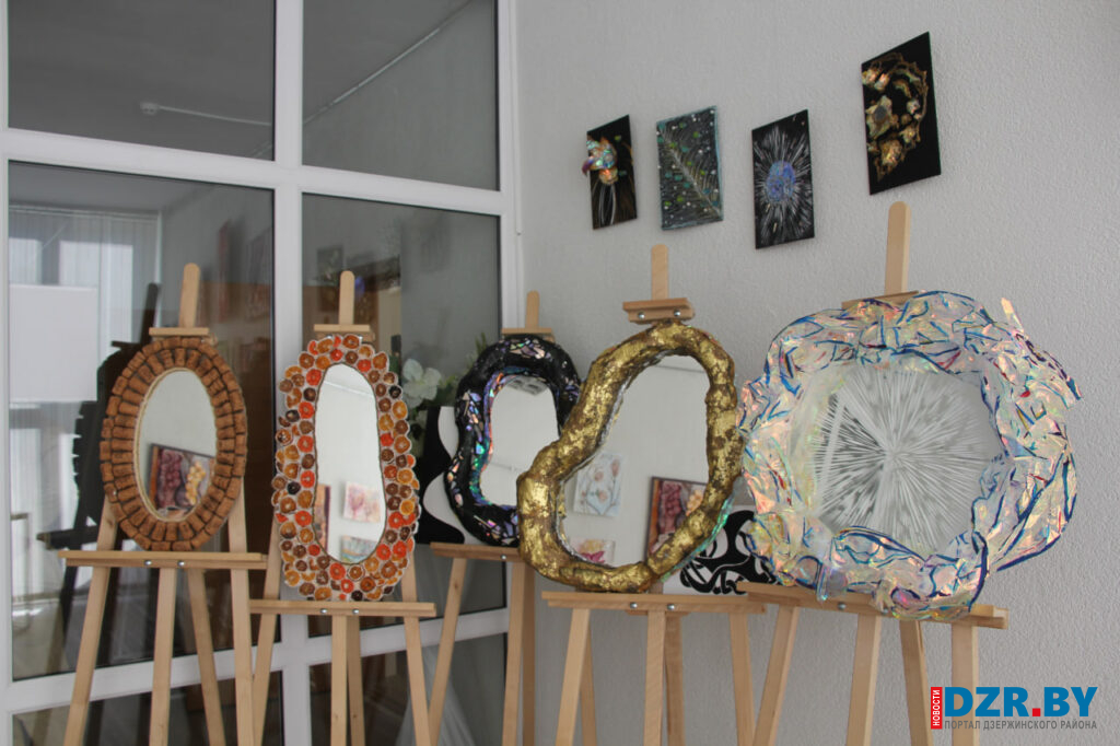 В Дзержинской районной центральной библиотеке в рамках проекта «Территория творчества» открылась необычная выставка. «Сияние мгновения» – так назвала свою первую персональную экспозицию Екатерина ГОРЕЙКО. Здесь представлены декоративные зеркала и картины, которые удивляют не только видом и формой, но и материалами, из которых они созданы.