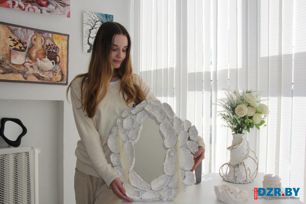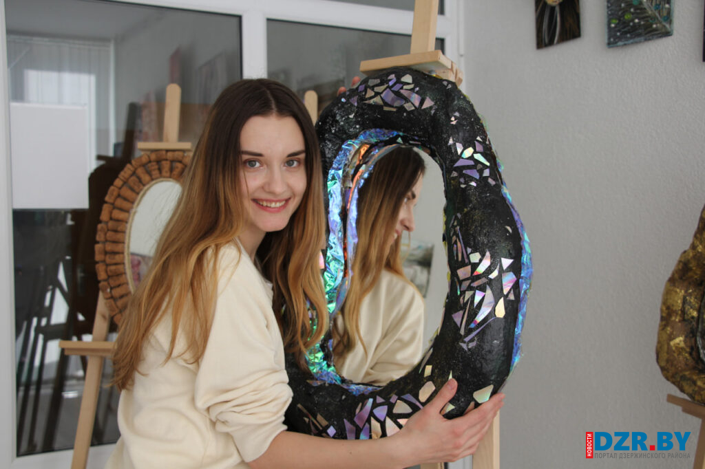 Желание создавать декоративные зеркала пришло к ней спонтанно. Первая работа, которая сейчас украшает выставку, была сделана именно из строительной монтажной пены. Жительница Дзержинска признается, что ее вдохновляет ресайклинг (переработка. – Прим.) – умение дать вторую жизнь предметам, обреченным на утилизацию.