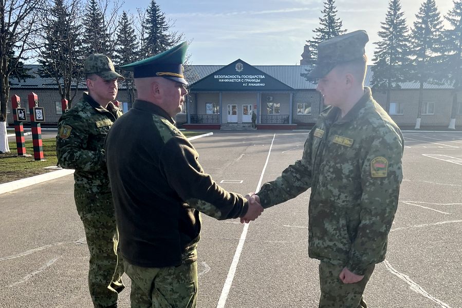 Особую торжественность моменту придало присутствие почетных гостей — представителей ветеранской организации. На митинге выступил председатель Дзержинской городской организации Белорусского союза ветеранов органов пограничной службы майор запаса Захар Сагайдак. Ветеран обратился к молодым мужчинам со словами напутствия, пожелав им мирного неба над головой, семейного благополучия и успехов в гражданской жизни.