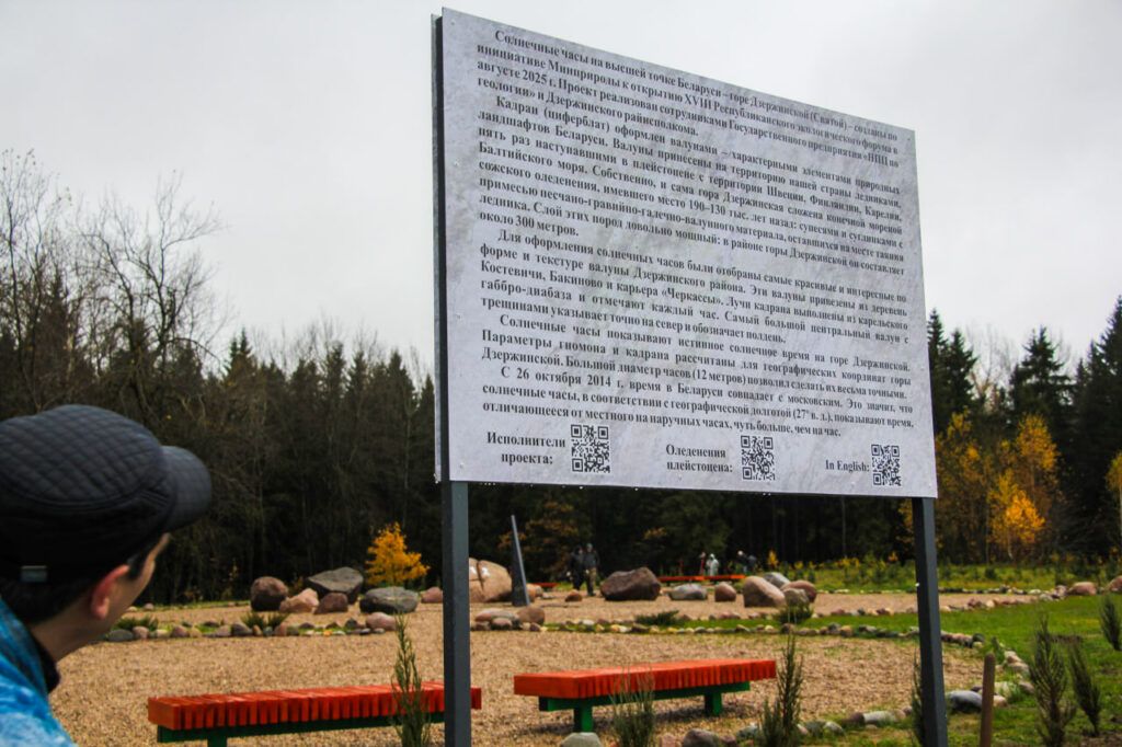 — С гордостью оцениваем преображение этого места — все реализовано в соответствии с первоначальной концепцией. Нами было предложено установить солнечные часы именно здесь, на высшей точке Беларуси. В целом, каждый элемент здесь продуман до мелочей — от подбора камней ледникового периода (все они характерны для этой местности) до архитектурного решения. Наши специалисты вкладывали в эту работу душу, тщательно отбирая каждый камень для экспозиции, — отметил генеральный директор научно-производственного центра по геологии Владимир Кузьмич.