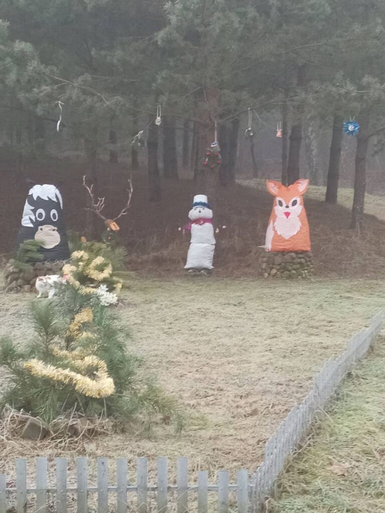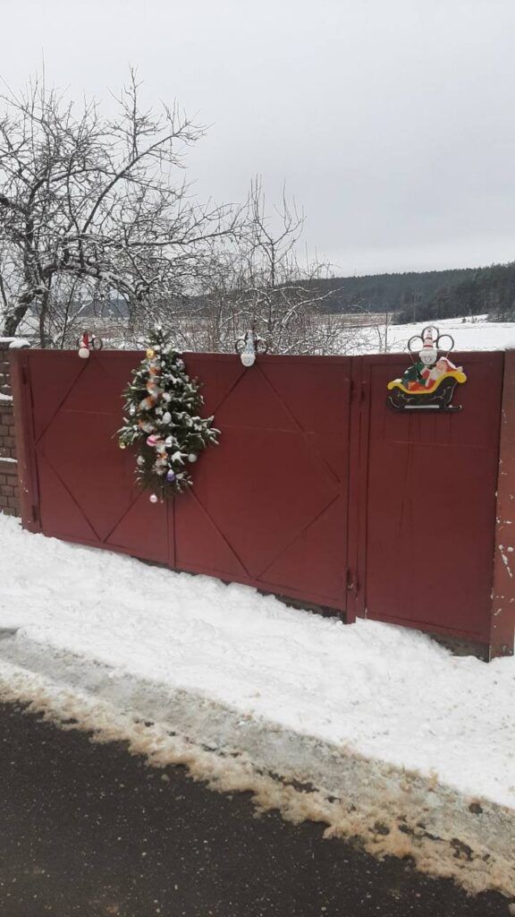 Если вдруг вы решите заглянуть сюда на экскурсию, то неминуемо зарядитесь праздничным настроением. При въезде всех встречает «Прывітальная» локация с пышным новогодним декором. Атмосфера праздника не покидает на протяжении всей улицы: ветки сосен украшают яркие игрушки, на калитках и воротах подворий – рождественские венки и банты, дворы и дома освещены теплым светом огней. Собравшись вместе, под руководством старосты Натальи Губич сельчане украсили информационные стенды, остановку, сделали креативные фотозоны. Одним словом, сделали все возможное, чтобы то самое предвкушение чуда из детства вернулось с новой силой…