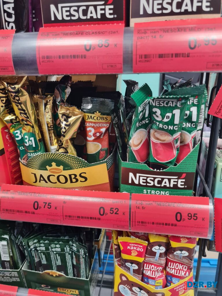 А также большой ассортимент саше из кофейных напитков 3-в-1. Их ценник в наших магазинах сегодня от 52 до 95 коп.