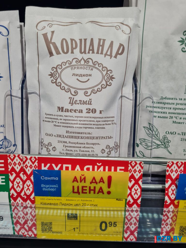 Из приправ сегодня в продаже 20-граммовый пакетик кориандра за 95 коп.