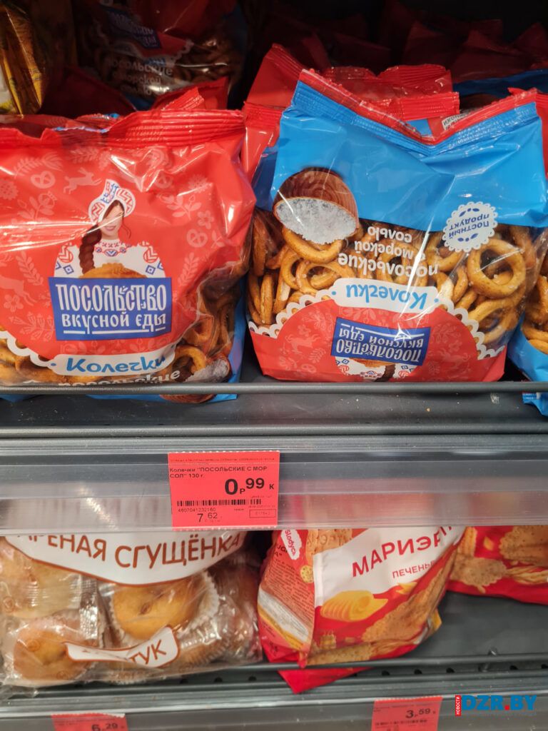 Из выпечки в продаже увидели колечки «Посольские с морской солью». Ценник за упаковку в 130 г – 99 коп.