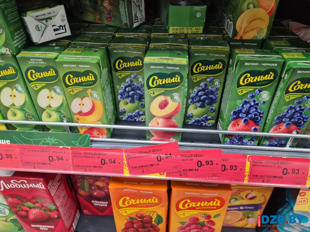 К сожалению, как ни искали, но простую воду с ценником до одного рубля найти не смогли. Зато нашли недорогой нектар «Сочный фрукт» (0,2 л) по 93–94 коп. за пачку.