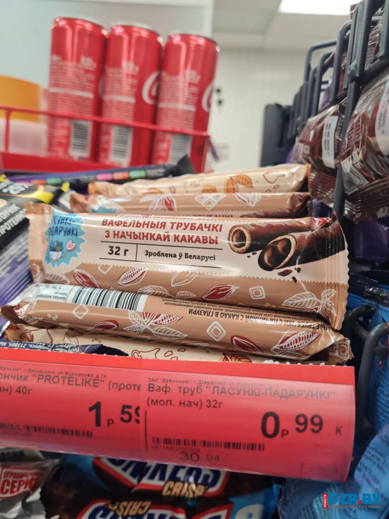 Более современные варианты – протеиновые батончики, вафельные трубочки «Ласункi-падарункi» в продаже от 45 до 99 коп.
