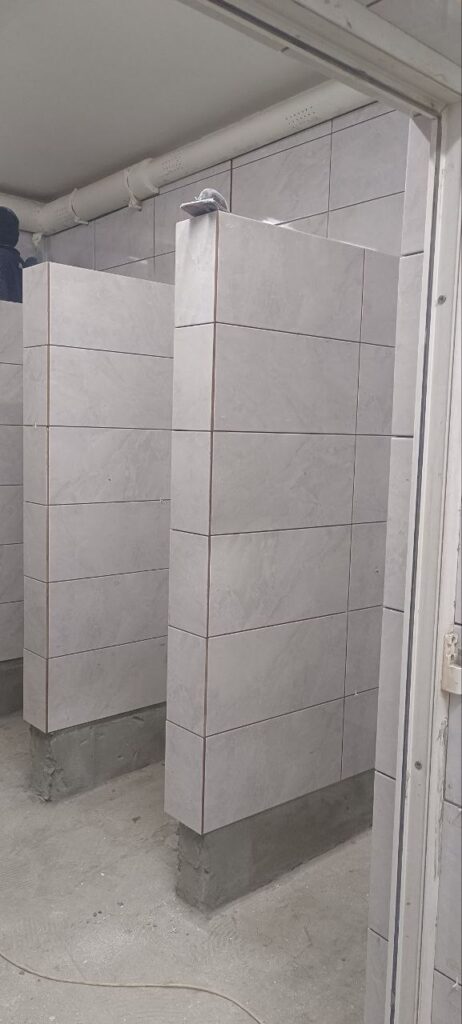 Отдельная глава ремонтной эпопеи – гимназия №1. Здесь полным ходом идет реконструкция душевых и раздевалок бассейна. А на лестничном марше устанавливают новые окна ПВХ и современные дверные блоки.