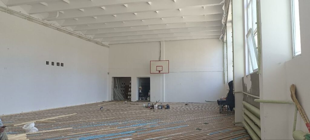 В СШ №4 подошли к вопросу комплексно: здесь ремонтируют спортивный зал (от кровли до пола), обновляют раздевалки и входную группу. А любители футбола будут приятно удивлены: на мини-поле заменят покрытие.