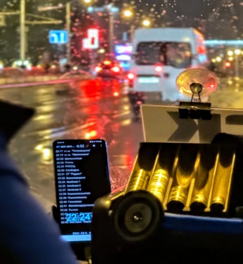Пробок не было, и весь путь от «Институт культуры» до Фаниполя занял около 20 минут. Машина была заполнена настолько, насколько это возможно в поздний час. Она не была забита под завязку, как в час пик, но 10-15 человек — это уже не «пустой рейс».