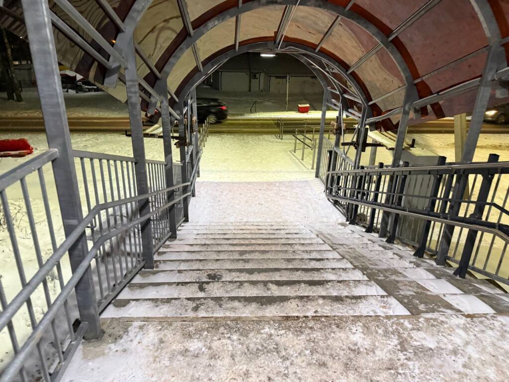 Обновленный мост оборудован навесом из поликарбоната, который защитит пешеходов от осадков и наледи зимой, а также специальным подъемником для маломобильных граждан.