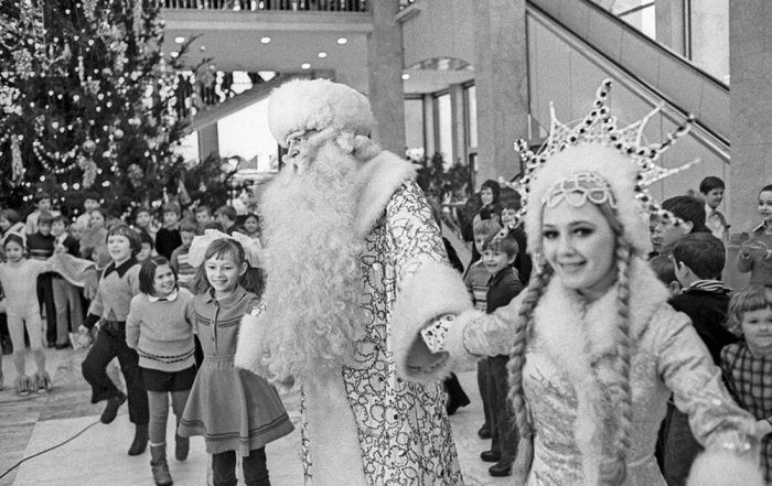 В 1980-е годы дефицит оставался, но появилась романтика ожидания чуда. Советские мамы шили для своих детей карнавальные костюмы из подручных средств. На школьных утренниках водили хороводы зайчики, снежинки, петрушки. Стали появляться первые искусственные елки и мишура «дождик».